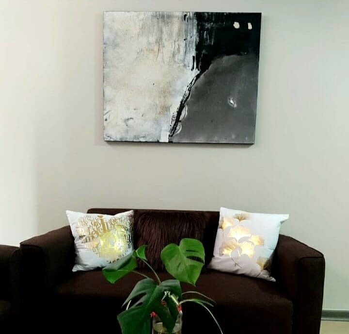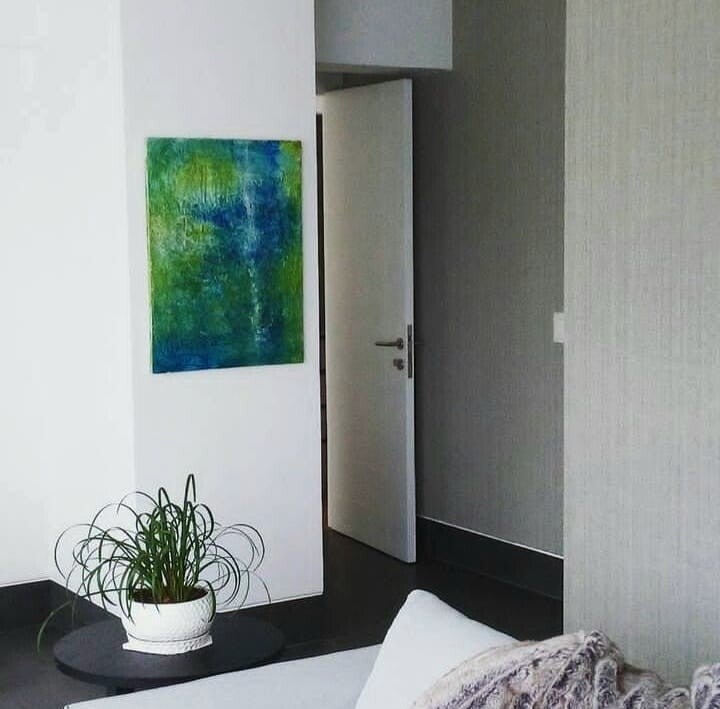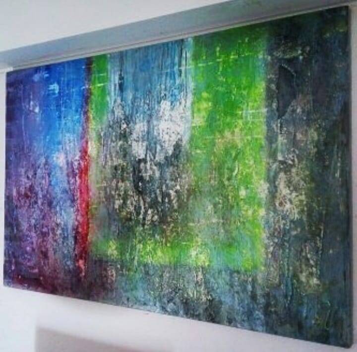 Una obra hecha a pedido para mi hija. Un trabajo con fusión de los colores que le encantan y con los cuales se identifica. Esos matices y mezclas de tonos hoy aportan muy alto nivel al interiorismo de su hogar.