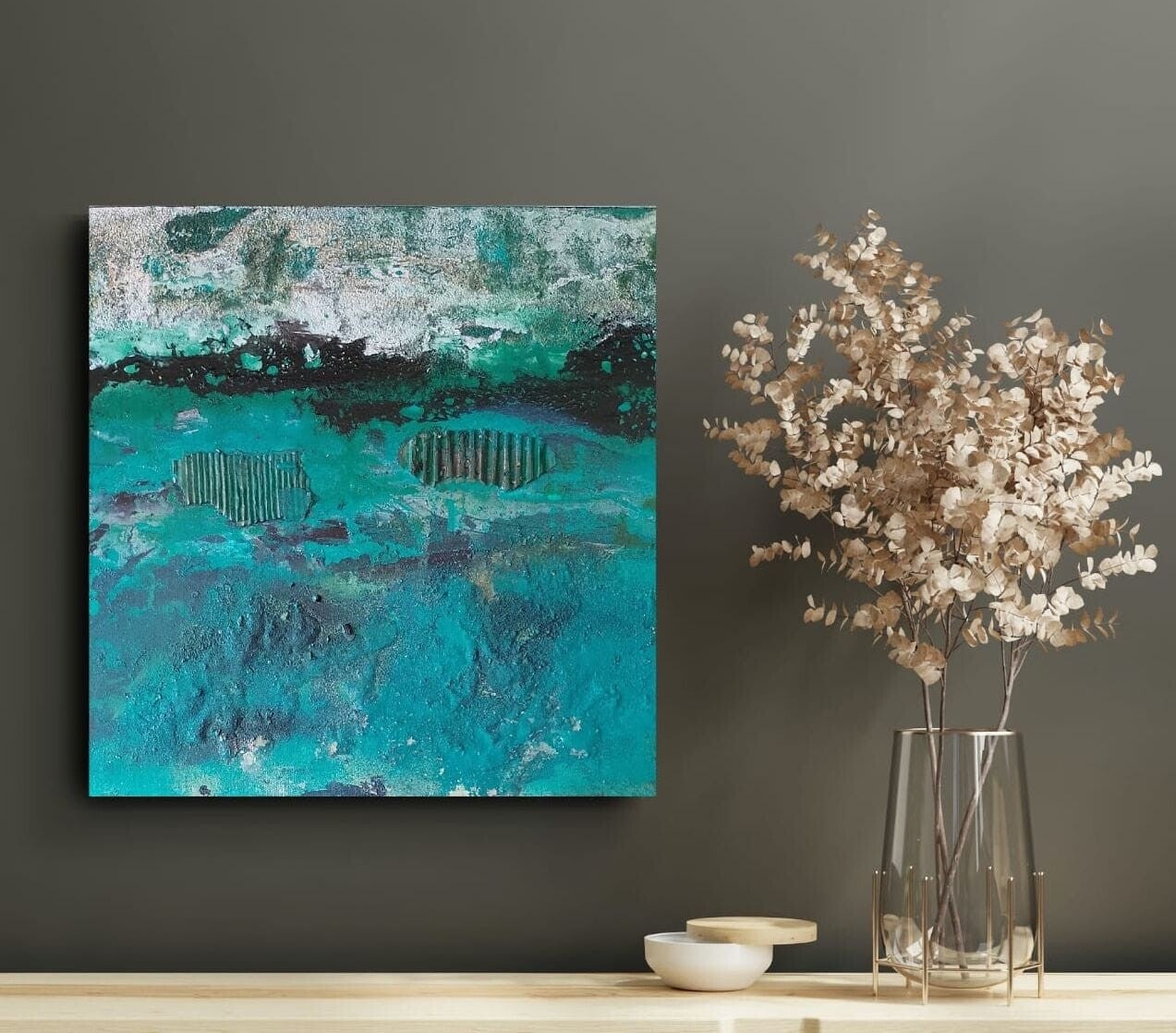 Acrílicos , Tintas al Alcohol y óxido ferroso sobre lienzo intervenido.