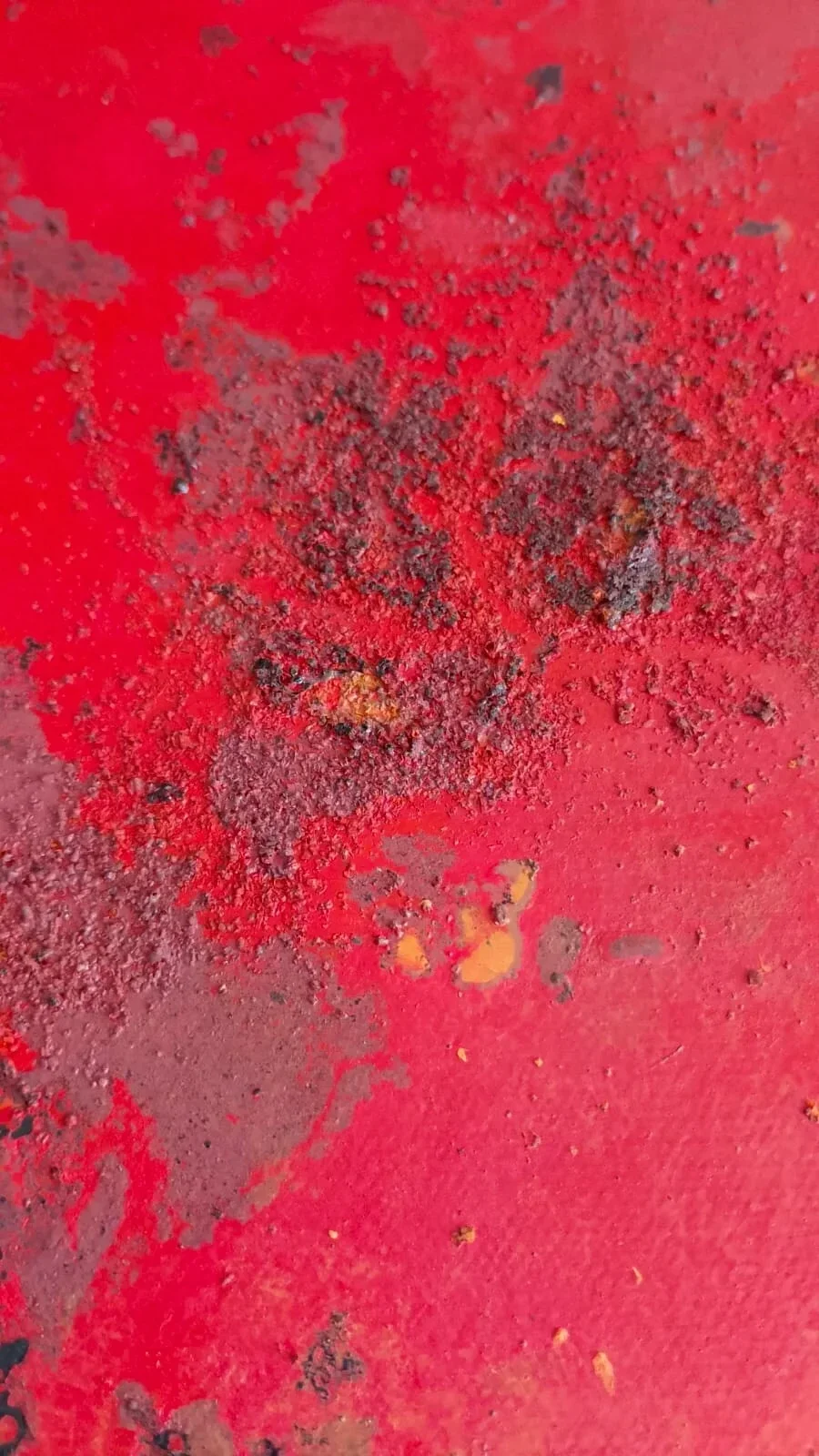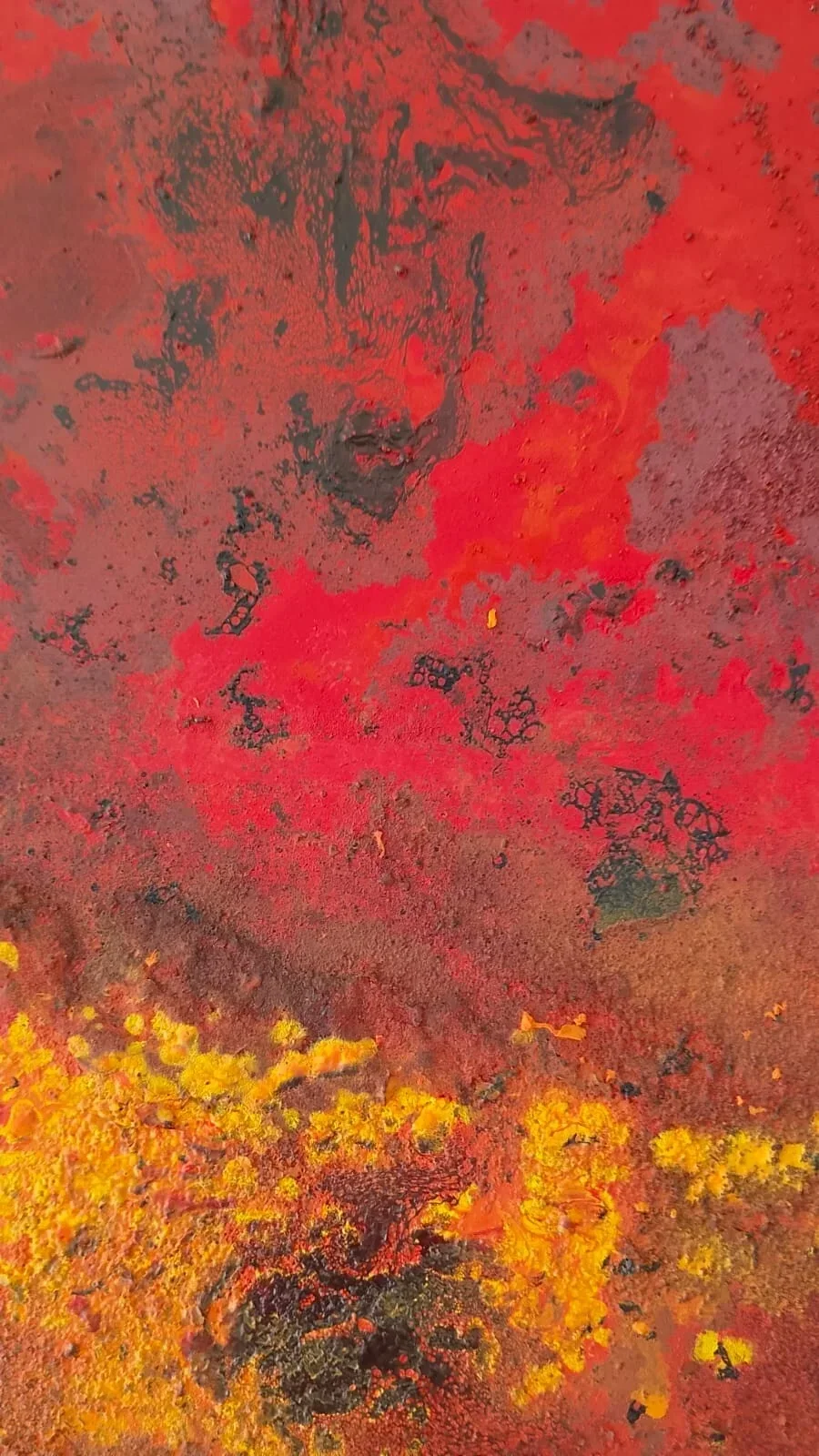 Acrílicos, óxido de hierro, tintas al alcohol y pintura en spray sobre lienzo intervenido.