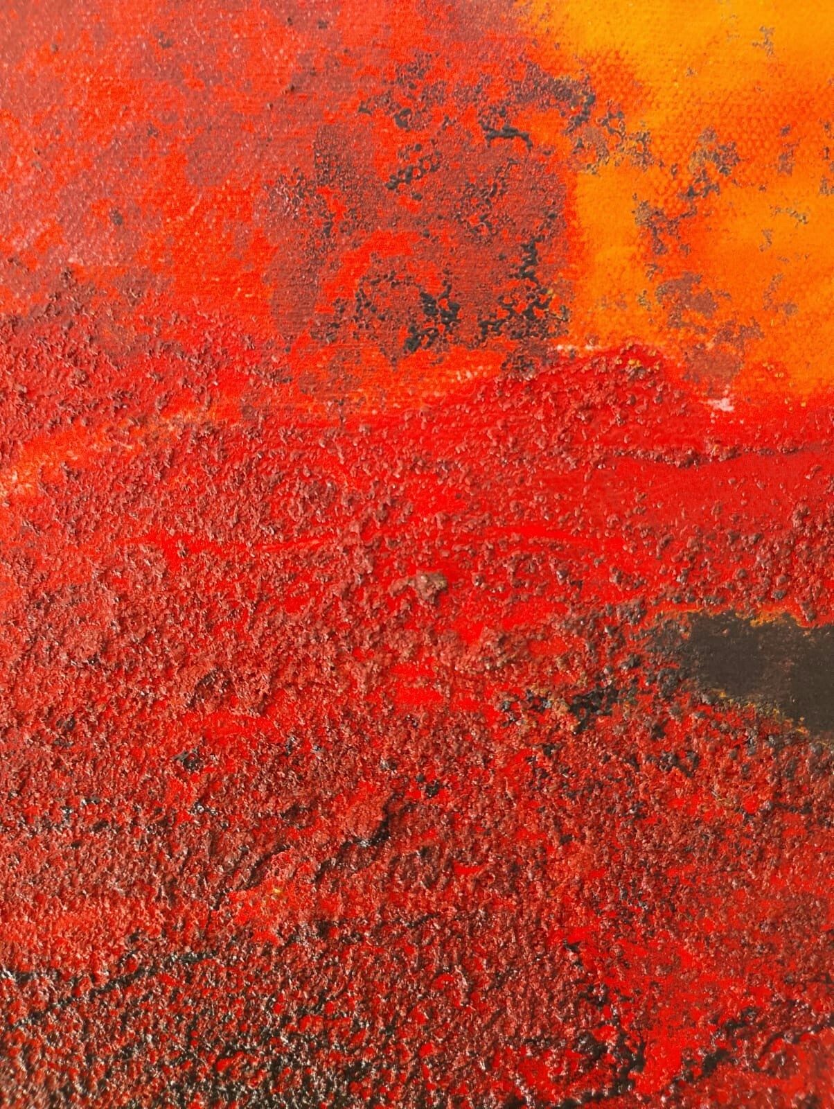 Acrílicos, tintas al alcohol, pintura en spray y óxido de hierro sobre lienzo intervenido.